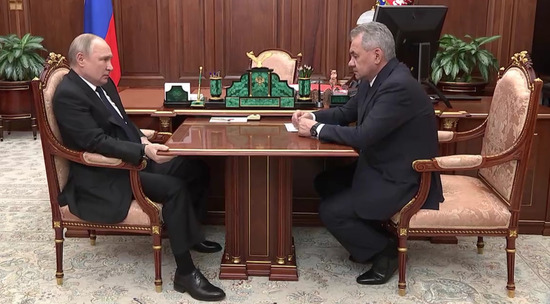 Владимир Путин встретился с министром обороны России Сергеем Шойгу. Шойгу заявил, что Мариуполь уже освобожден от националистов, оставшиеся боевики скрываются на территории завода Азовсталь. Он добавил, что комбинат "надежно заблокирован". Путин приказал отменить штурм территории завода, назвав его нецелесообразным. Всю встречу президент притопывал ногой и держался рукой за стол.