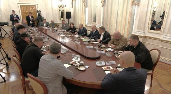 В Кремле проходит встреча президента РФ Владимира Путина и представителей российских медиа, в частности, военных корреспондентов ведущих телеграм-каналов и федеральных телеканалов.