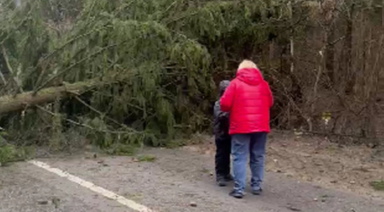 На одном из них показано, как ветер повалил огромное дерево в Подмосковье, оно проломило высокий забор и упало прямо на дорогу. Запись сделана Дмитрием Сазоновым.