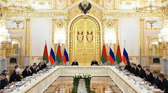В Большом Кремлёвском дворце прошло заседание Высшего Государственного Совета Союзного государства, в котором приняли участие Президент России Владимир Путин и Президент Белоруссии Александр Лукашенко. По итогам заседания был подписан пакет документов.
