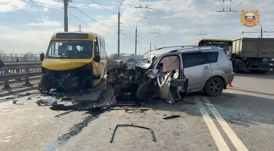 17 апреля в 07:05 на путепроводе у дома №74 по проспекту Октября произошло столкновение. Водитель Mitsubishi Outlander, 2004 года рождения, выехал на встречную полосу и врезался в автобус ГАЗ.